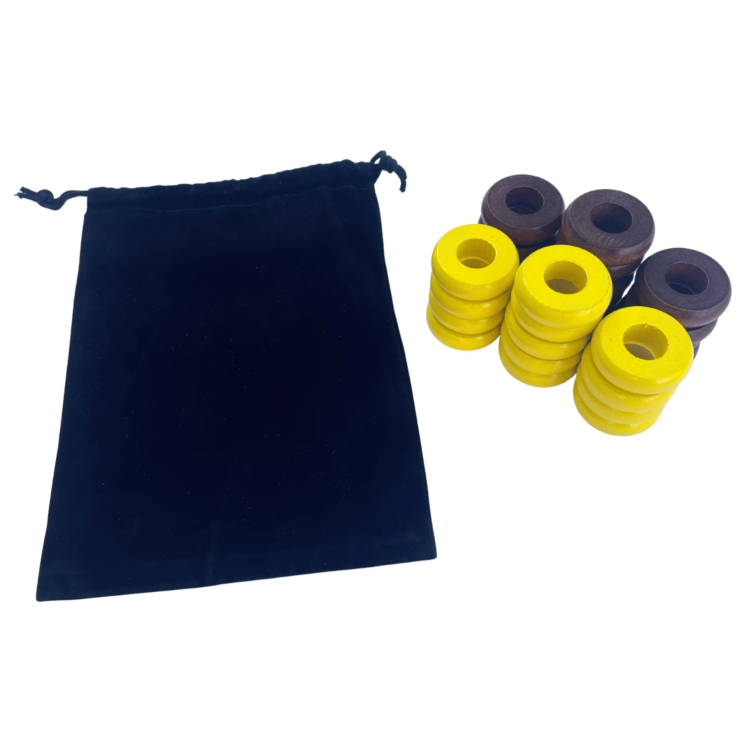 32 Yellow and Walnut Carrom / Pichenotte Rings - (Yellow / Walnut / Natural / Black / White) - Anneaux De Pichenottes - Game Accessories / Accessoires De Jeu